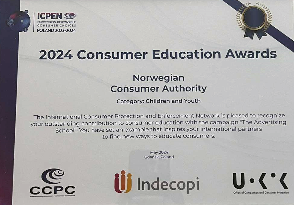 I 2024 vant Reklameskolen ICPEN Consumer Education Awards i kategorien barn og unge. Denne prisen deles ut av International Consumer Protection and Enforcement Network (ICPEN), og går til en informasjonskampanje som har bidratt til god opplysning av forbrukerne.